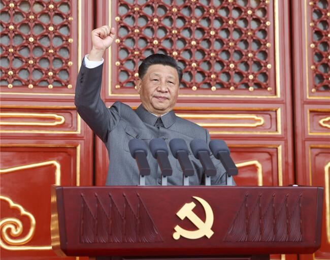 2021年7月1日,庆祝中国共产党成立100周年大会在北京天安门广场隆重举行。习近平发表重要讲话。新华社记者 鞠鹏 摄