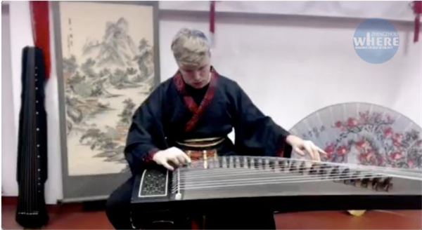 这个金发碧眼的小伙子,是巴比什博雅依大学孔子学院的学生,来自郑州市的国际友城罗马尼亚克卢日•纳波卡市。他有个好听的中文名字叫吕泽洋(罗马尼亚名字:Lujerdean Adrian-Gabriel)。他不仅会娴熟地演奏古筝,还能用标准的汉语送上新年祝福。