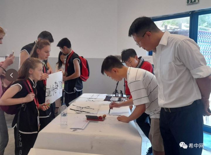 活动中,以“茶和天下”为主题的中国文化节,吸引了众多现场观众驻足互动,中国传统文化也真正地融入到欧洲各国和希腊民众之中。蕴含和谐寓意的茶道品鉴、田园野趣的中式插花、活灵活现的传统剪纸、洒脱飘逸的毛笔书法、蕴含意趣的水墨丹青、清婉流畅的古筝演奏以及各色精美的中国特产等文化展台,为前来参加活动的观众和运动员带来极具特色的中国文化体验。阿提卡省长帕图里斯特别参观了希腊小朋友使用毛笔书写中国汉字、尝试插花和剪纸,并表示这是非常有意义的互动性的中希文化交流。