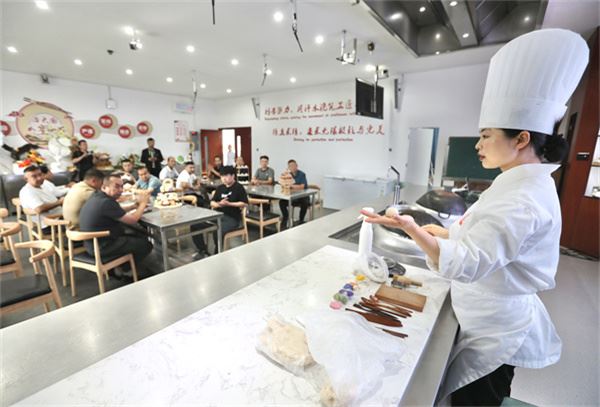 本网20日讯:“在‘叶子’的边缘位置,用食指和拇指压一下,让它更薄、更逼真一点。”11日,四川省成都市财贸职业高级中学校多功能演训室内,面点老师向雪梅一边捏制面点,一边给来自成都市多个社区的各民族学员教授制作技巧。