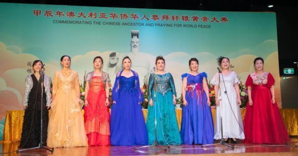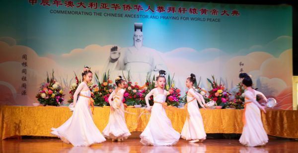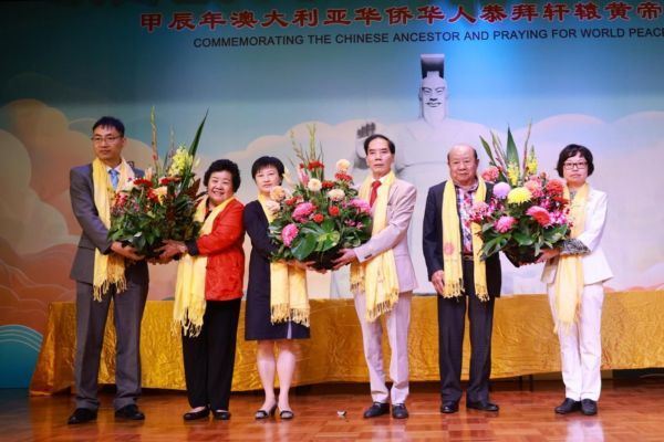 4月7日上午,悉尼市中心艾士菲市政厅中,盛放的鲜花装点着祥和的会场,人文始祖轩辕黄帝的巨幅坐像矗立于高高的舞台中央,现场人头攒动,热闹非凡。