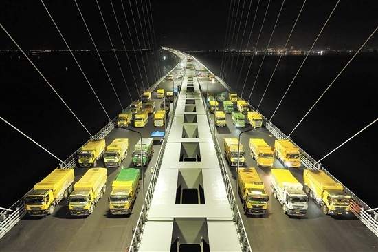 11月14日,广东交通集团发布消息,黄茅海跨海通道项目黄茅海大桥荷载试验完成,54辆载重共1890吨的汽车分四次加载,最终稳稳停在桥面上(上图)。项目另一座主桥高栏港大桥已于11月5日完成荷载试验,至此,项目桥梁工程通过“深度体检”,为顺利通车再添关键一笔。