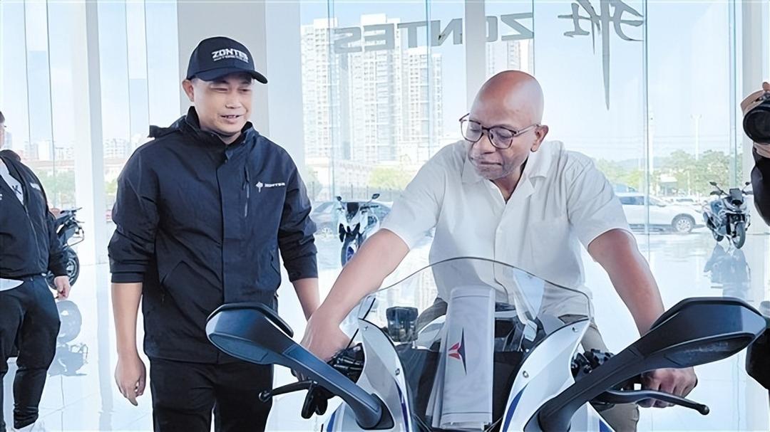 “这款摩托车是我们今年9月上市的龙头产品,全车采用自主研发的轻量化铝合金双翼梁车架,是中国摩托车业内首个也是唯一一个采用铝合金高真空一体压铸成型车架的摩托车。重量虽然减轻了30%,但强度提升了30%,百公里加速仅需3.07秒。”大冶摩托工作人员在介绍一款新车型时表示,该款摩托车不久前获得2024年广交会设计创新奖(CF奖)金奖,目前该车面向全球销售。这不禁让哥伦比亚驻广州领事古斯塔沃·马卡纳基眼前一亮,他迫不及待地骑上车进行试骑,并向工作人员询问更多车辆信息。