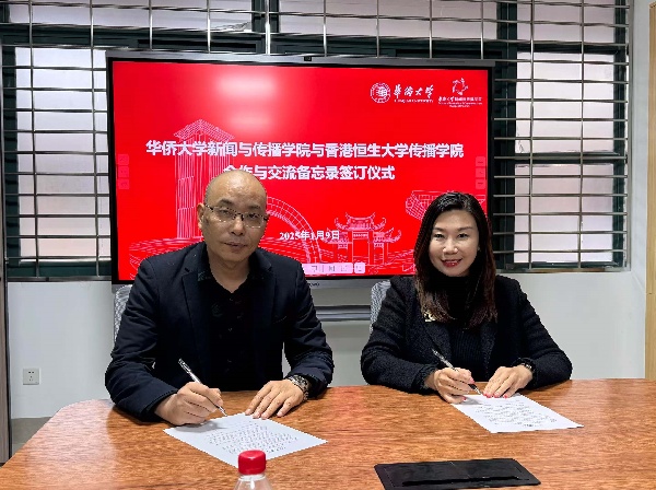 2025年1月9日,阳光和煦,海风轻拂,美丽的海滨城市厦门迎来了一个历史性的时刻。香港恒生大学传播学院院长曹虹(旨言)教授与华侨大学新闻与传播学院常務副院长王桂亭在此正式签署了一项具有深远影响的合作备忘录。双方宣布将携手共建人工智能新闻与内容研发基地,旨在通过前沿技术的革新应用,为全球文化传播领域注入新的活力,特别是为海外媒体提供更为丰富、高效且个性化的内容服务。