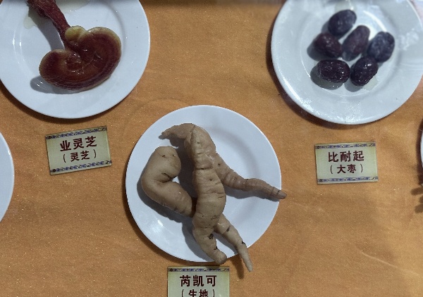 兴文县苗医体验馆展示的药材标本。 王磊 摄