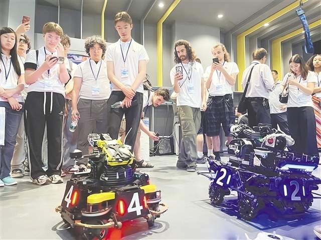“这里的东西让我大开眼界,我感觉中国大学的专业设置比美国更侧重实践。”参观过程中,交流团成员Winfred Lin被五邑大学学生制造的战斗机器人深深吸引,“我了解到中国的大学会鼓励学生自主完成机器人制作并参与竞赛,这种活动让我觉得很有趣。”