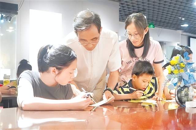 图为国家级非遗代表性传承人廖惠林指导市民体验烙画工艺。