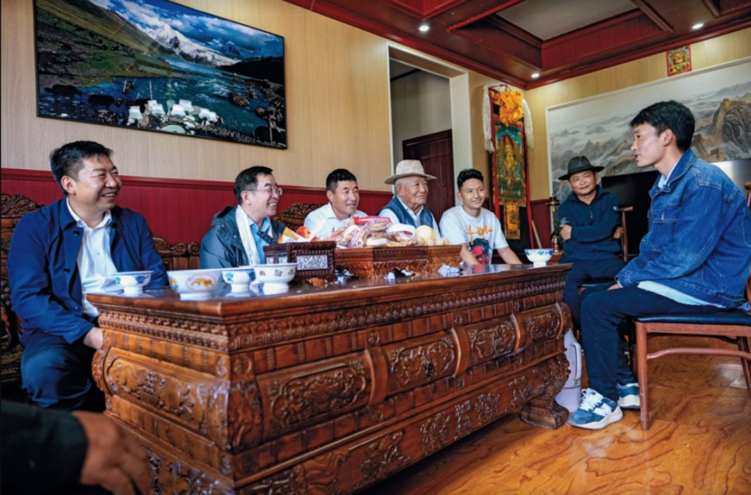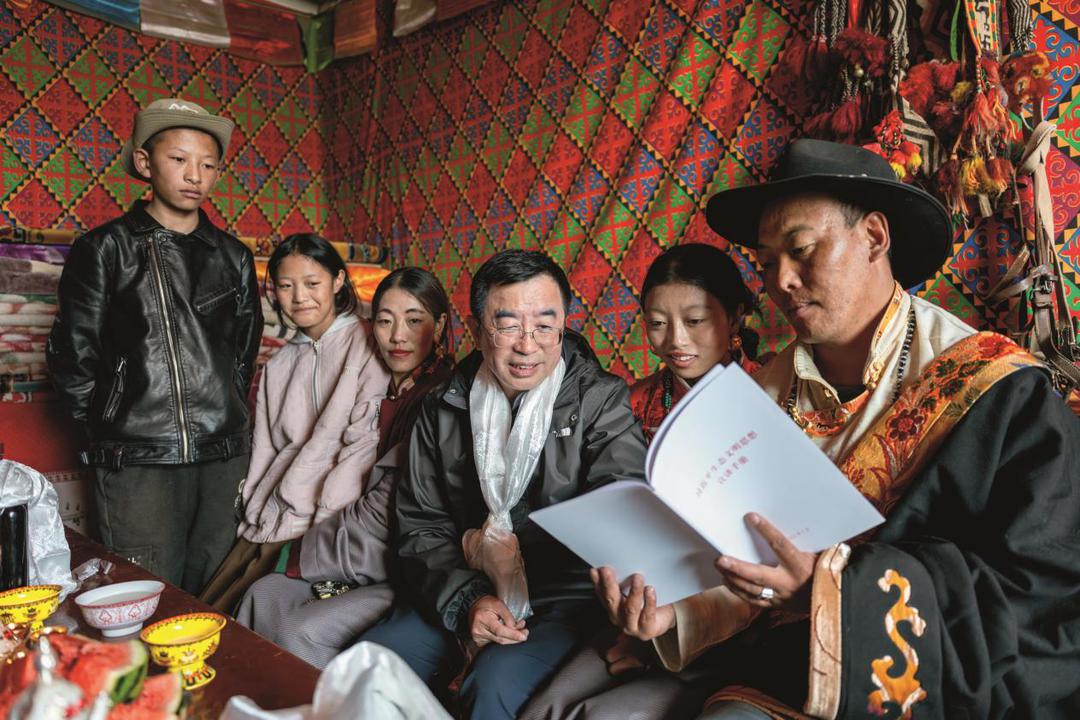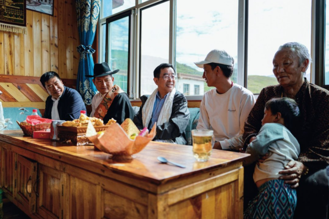 2024年8月4日,连玉明院长在囊谦县香达镇青土村牧民丁巴尼玛家中调研。