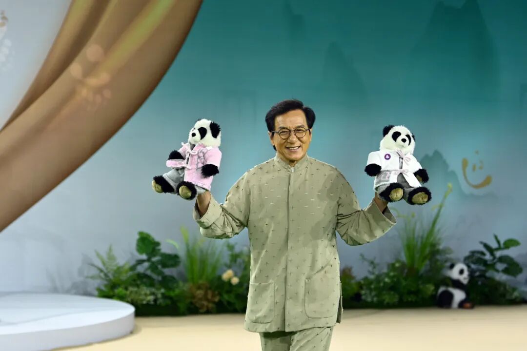 2023年9月20日,首届金熊猫奖颁奖盛典在四川省成都市举行。图为成龙携认养熊猫玩偶抵达金熊猫盛典现场。中新社记者 刘忠俊 摄