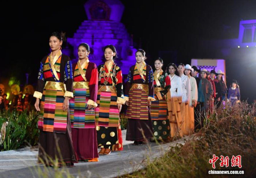 20日晚,一场田园中的走秀让大众再次感受到乡城女性最具代表性的民族服饰“疯装”的文化内涵和动人魅力。伴随着夜幕下的绚丽灯光,当地藏族村民和来自青海、甘肃、西藏等地的藏族模特身着盛装,演绎一场融合传统与现代的“民族时尚秀”。