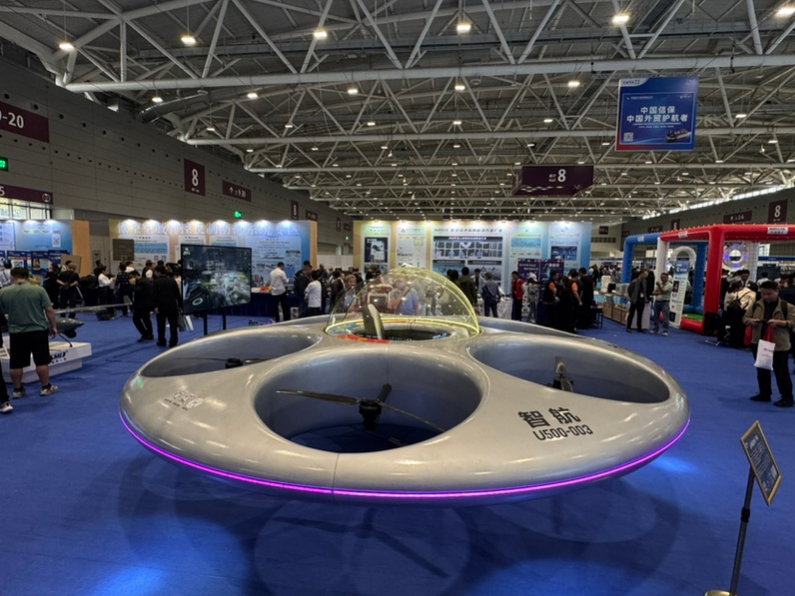 低空经济展区,市场定位与“鹊飞”相近的飞行器为数不少。无论是英武智能科技带来的S-ZERO飞行器,还是深圳智飞展示的全球首款飞碟型载人飞行器,都以低空观光为主要赛道。前者采取开放式座舱,视野开阔。后者利用飞碟造型,配备球形透明座舱,提供360度全景视野。